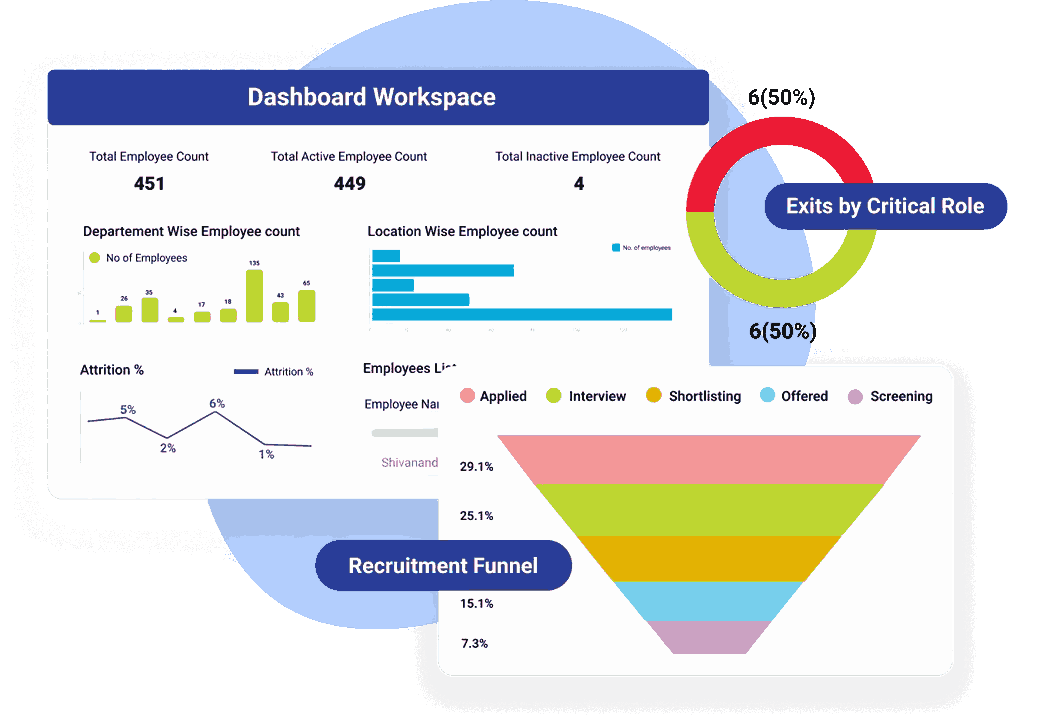 - Employee Lifecycle Management: Manages end-to-end HR journeys from hiring to exit.