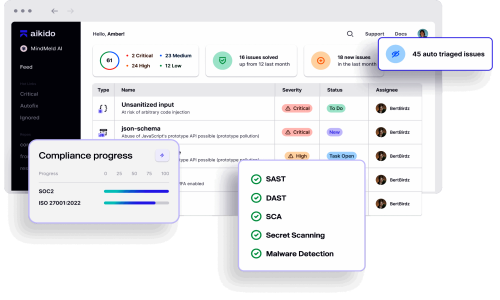 AI triage eliminates unnecessary noise, and even advanced features like runtime protection and compliance automation are easy to set up. Whether you're a junior developer or a senior security engineer, Aikido is built to work for everyone.
