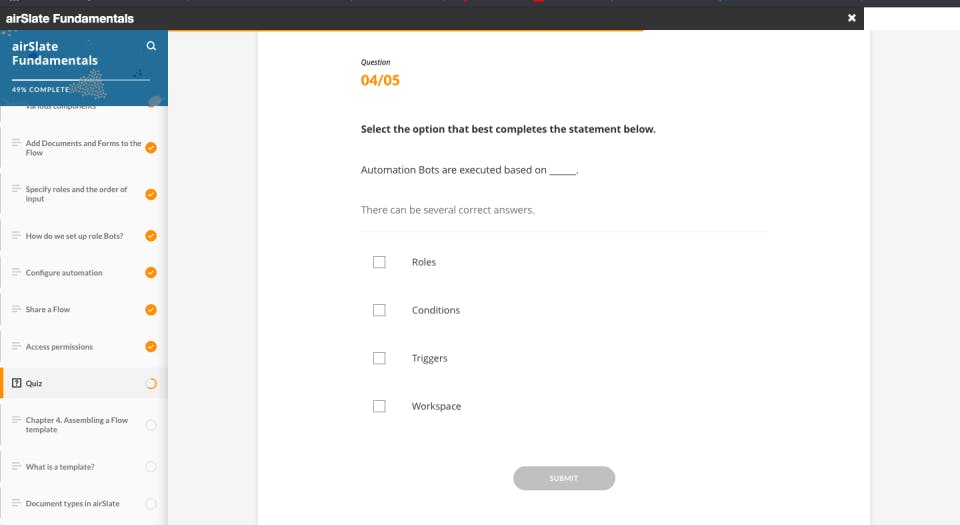 Using airSlate Academy is simple and beginner-friendly. Start by signing up for a free account on the platform. Browse through the available courses based on your interest, such as document automation, workflow design, or no-code solutions. Enroll in your selected course and follow the lessons at your own pace. Each course includes videos, quizzes, and practical exercises to reinforce learning. After completing the course, take the final assessment to receive your certification. You can revisit lessons anytime, track your progress, and apply what you've learned directly within the airSlate platform for hands-on experience.