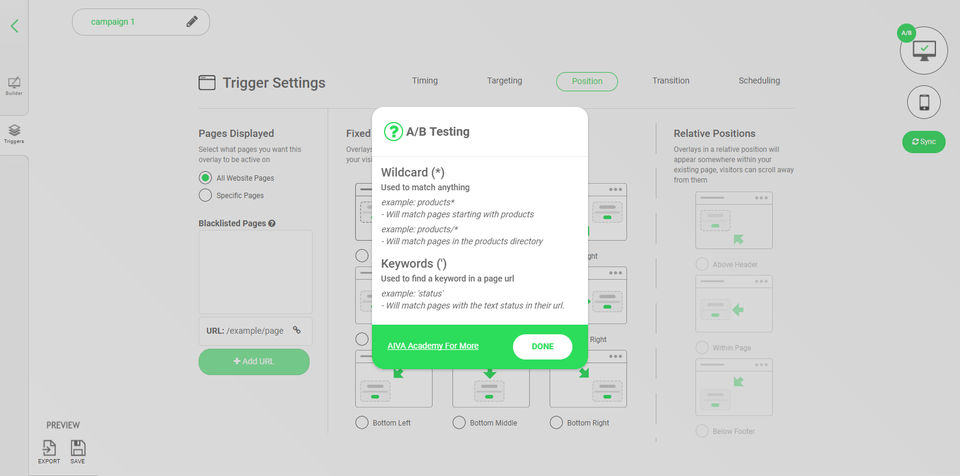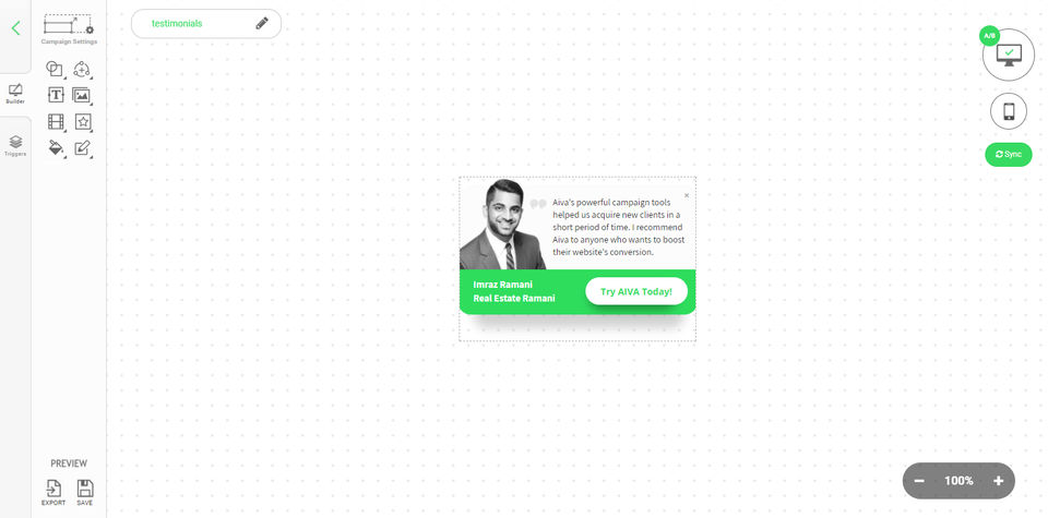 Problem with regular popup builder is that they don't provide detailed targeting and design options. With Aiva I am able to create different targeting based on user behaviour and the device which will help to get more leads and increase CTR.