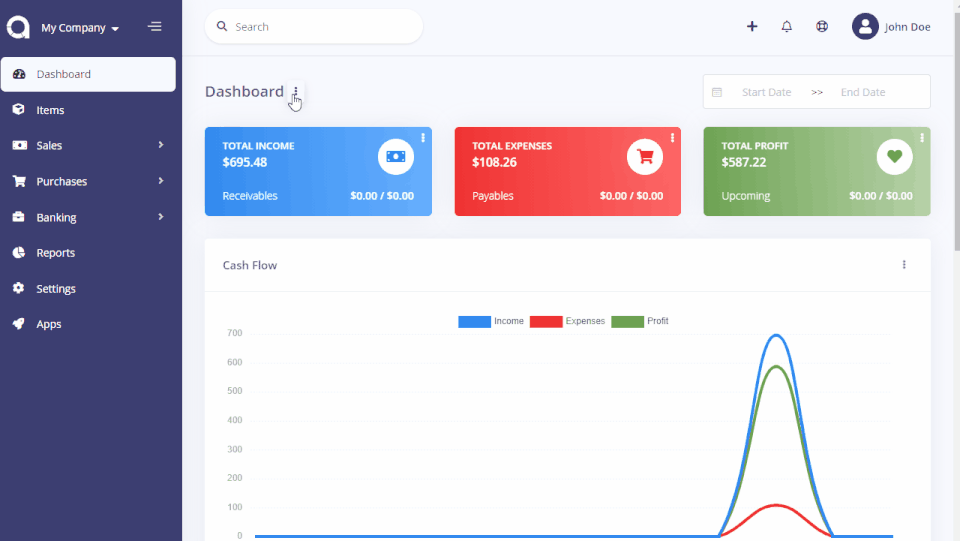 Akaunting is the Accounting Software used for the below functionalities.