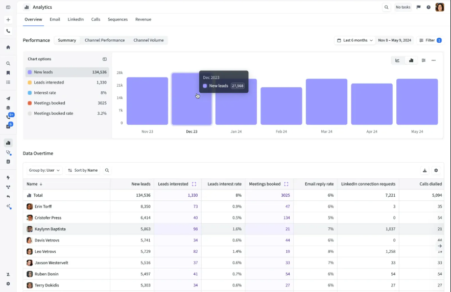 The analytics dashboard offers granular visibility into every stage of the sales funnel, helping teams identify what strategies work best. With real-time metrics and insights, teams can refine their outreach and improve conversion rates continuously.