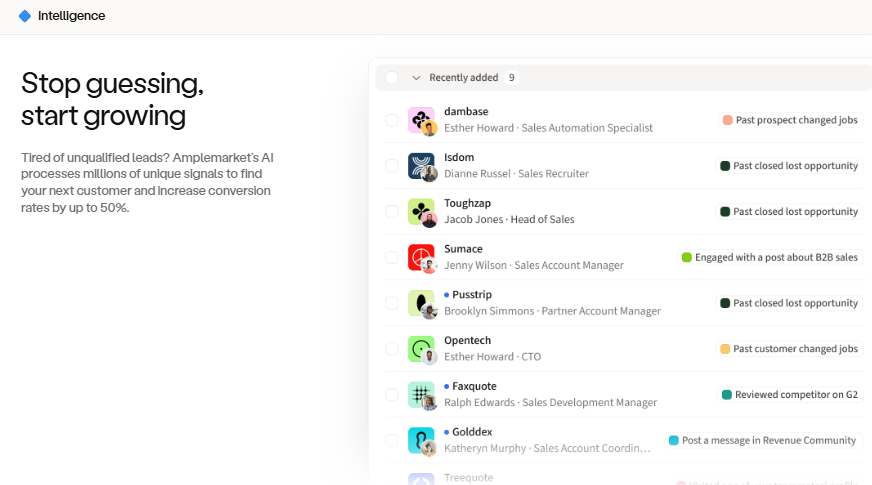 The platform’s Chrome extension supports social prospecting on LinkedIn, allowing users to build targeted lead lists directly from profiles. With seamless CRM integrations and customizable workflows, Amplemarket is built to enhance outbound efficiency and support scalable sales growth.