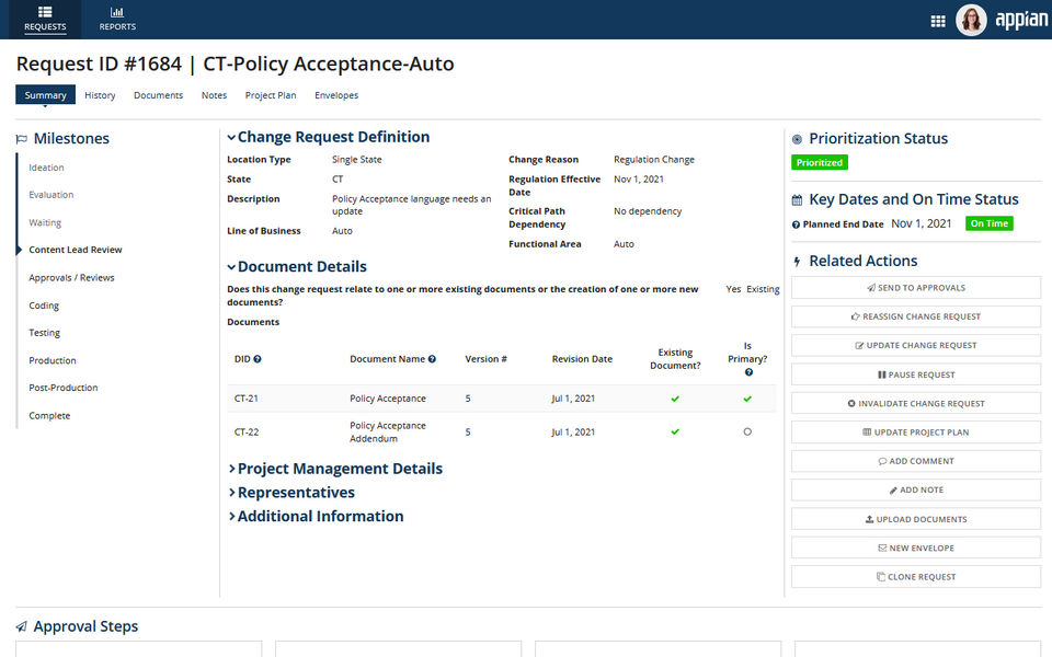 Appian is the Low Code Development Platforms (LCDP) Software used for the below functionalities.