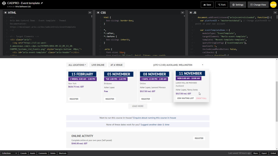 We use Arlo as our booking platform for our public courses.