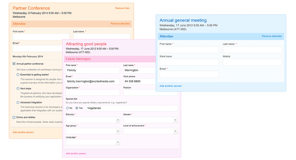 attendance confirmation not for multi session events