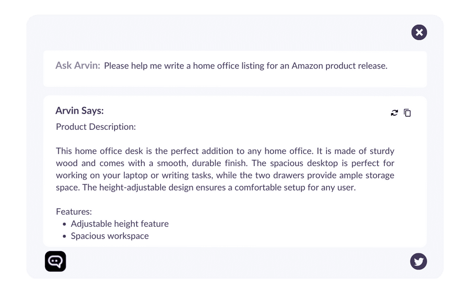 Arvin is the AI Writing Assistant Software used for the below functionalities.