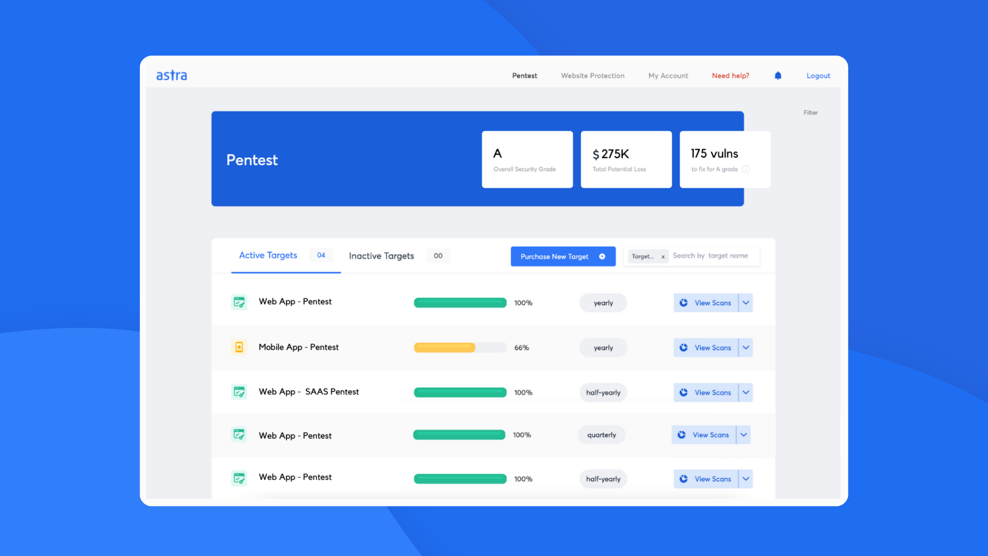 Astra Pentest is the Vulnerability Management Software used for the below functionalities.