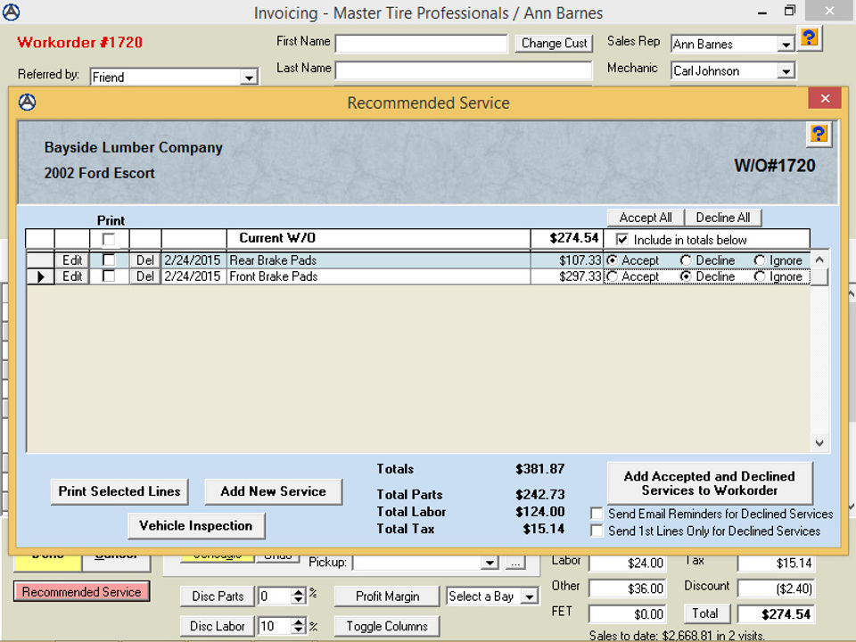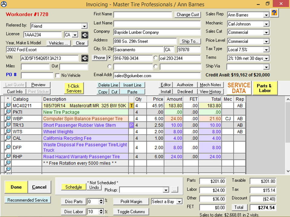 I appreciate the fast helpful staff with the on line chat or auto log in to our computer. I like the reports that I can print. They are easy to read and a variety to pick from. I find the program easy to teach to the new employees and user friendly to find invoices, work orders and payments. This system is easy to modify our needs with ratios, % and discounts. I really like it.