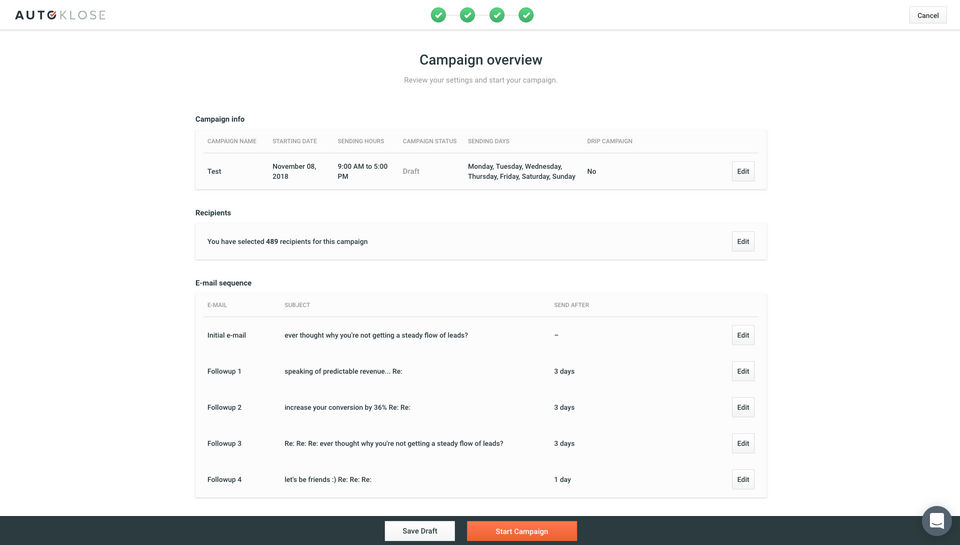 We are a small personnel company with a limited database and autoklose helped us to prospect more people.