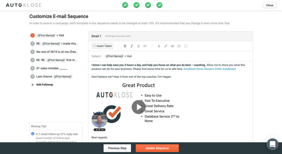 Autoklose is the Sales Engagement Software used for the below functionalities.