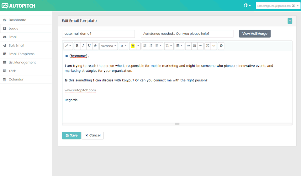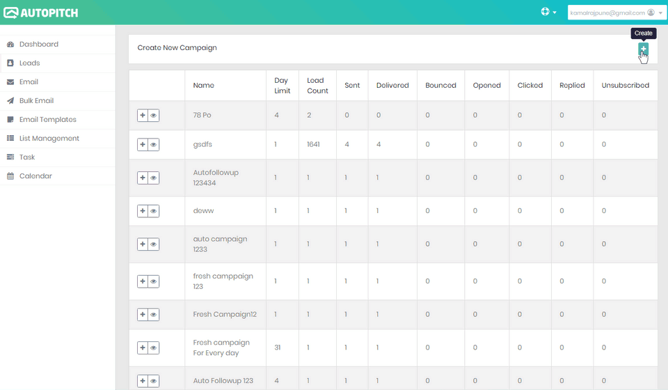AutoPitch is the Email Marketing Software used for the below functionalities.
