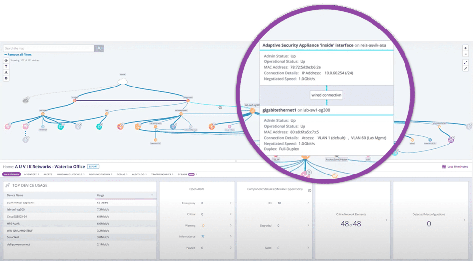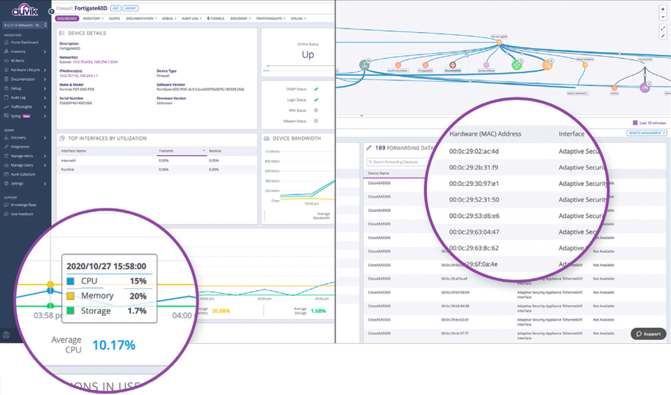 Auvik is the Network Monitoring Software used for the below functionalities.