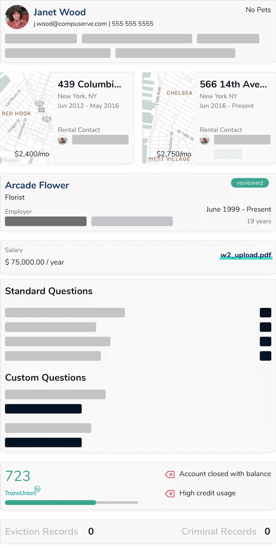 - Rental and employment histories