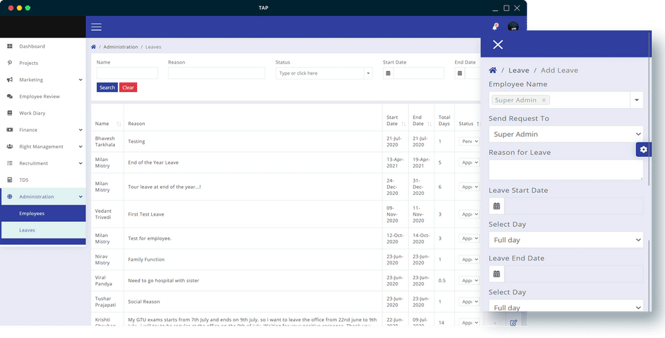 - Leaves Management