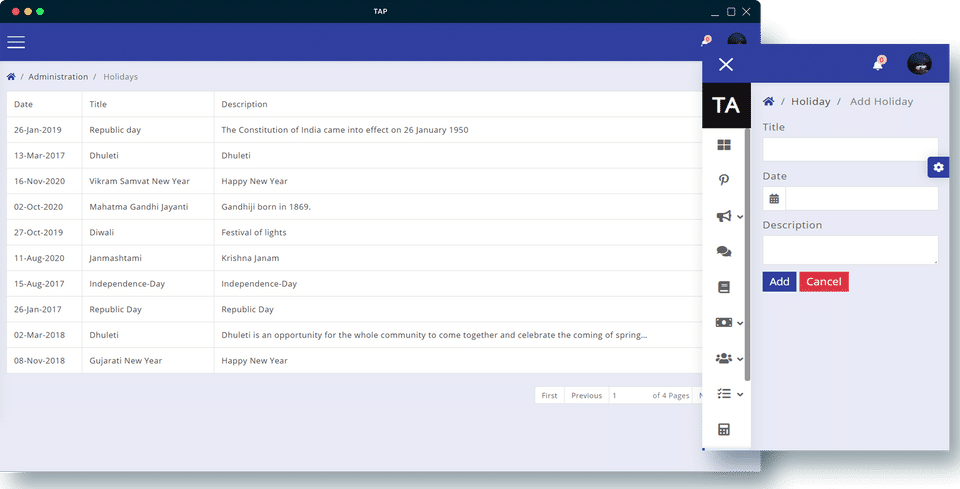 - Holidays Mangement