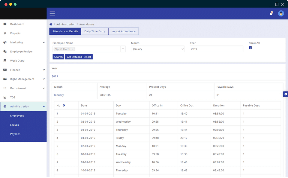 AwedusHR is the HR Software used for the below functionalities.