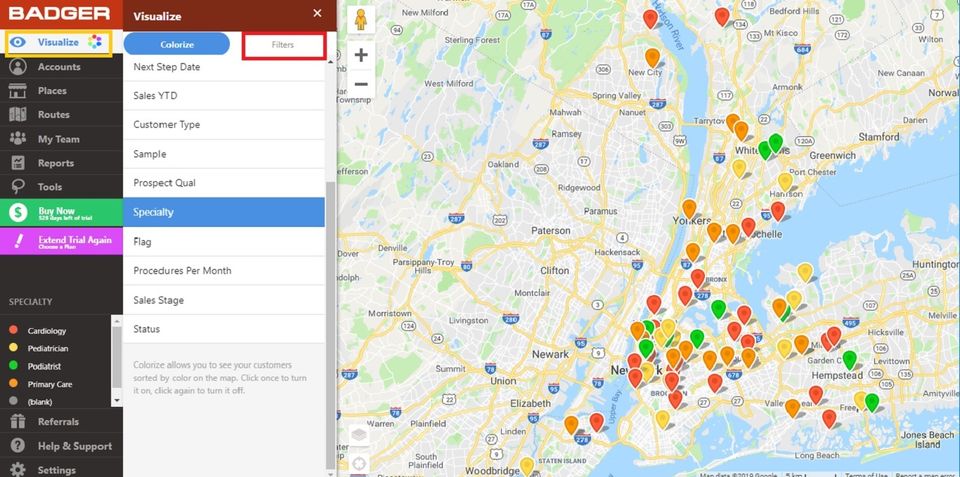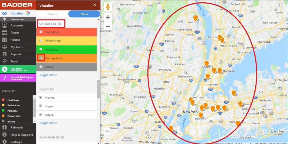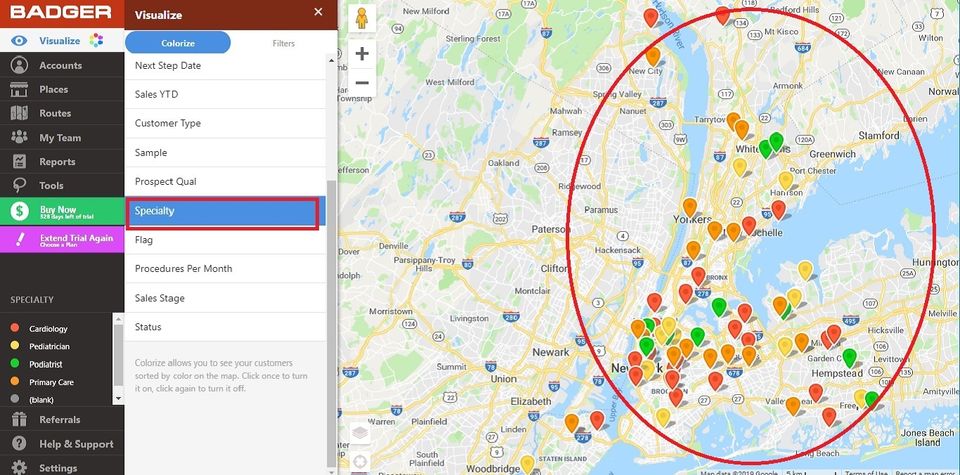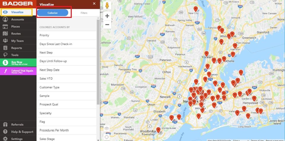 Badger Maps is the Geographic Information System Software used for the below functionalities.