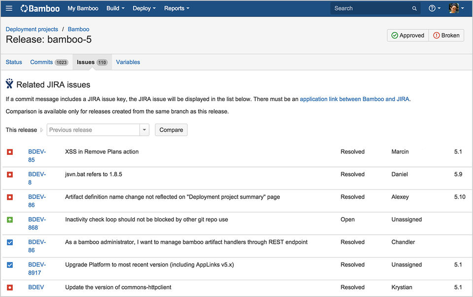 Bamboo has great integration with the rest of the Atlassian stack (JIRA, Bitbucket, etc...). It was really simple to setup those connections.
