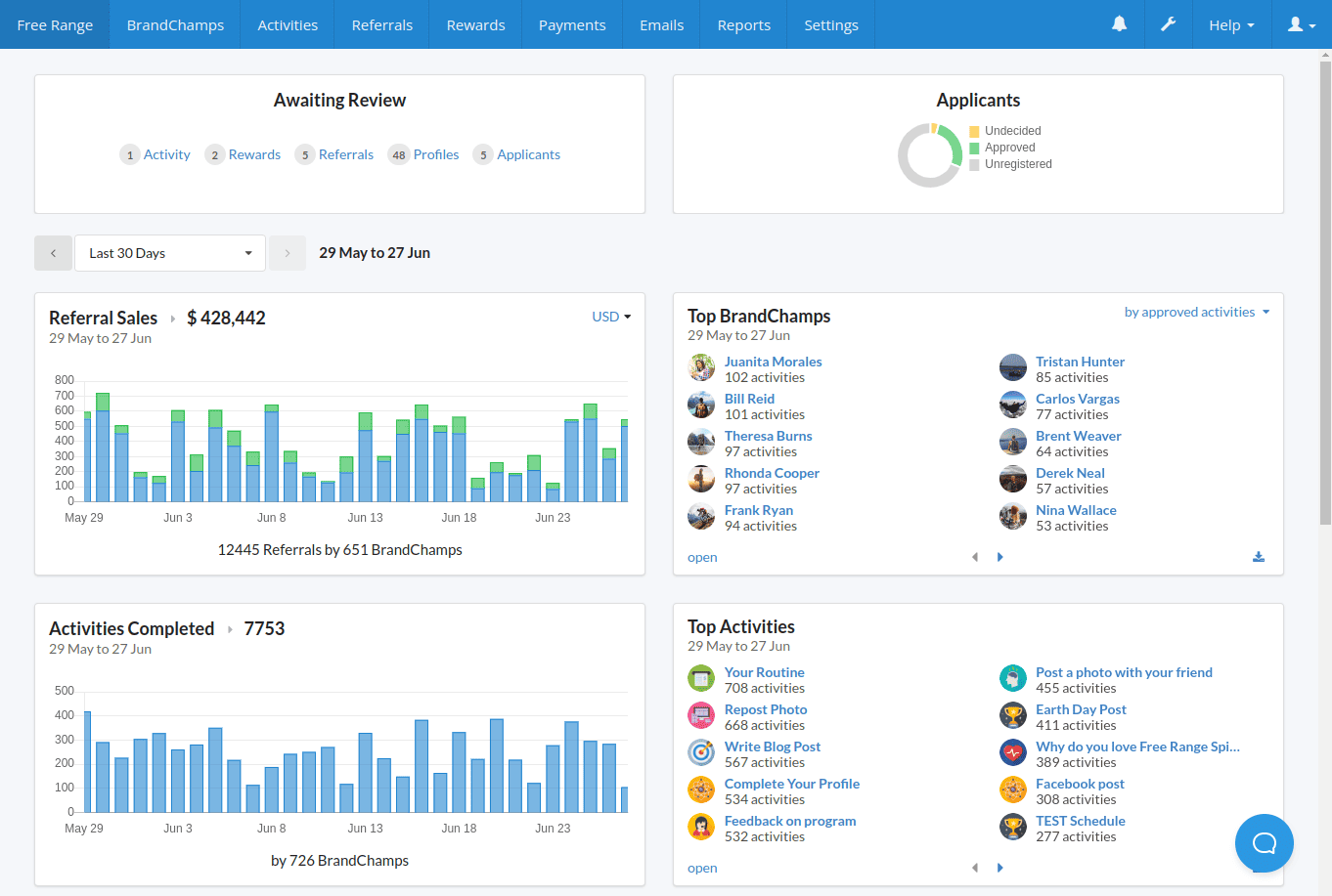 Real-Time Analytics: Gain insights into ambassador performance, campaign effectiveness, and overall program ROI.