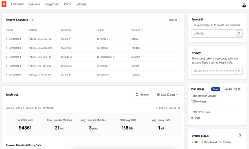 Many users ask, how much does Browserbase cost? The answer depends on usage, session volume, and required features. Browserbase pricing plans are designed to scale with team needs, offering flexibility for startups and enterprises alike. Browser base pricing and Browserbase plans typically vary based on browser hours, API usage, and concurrency requirements.