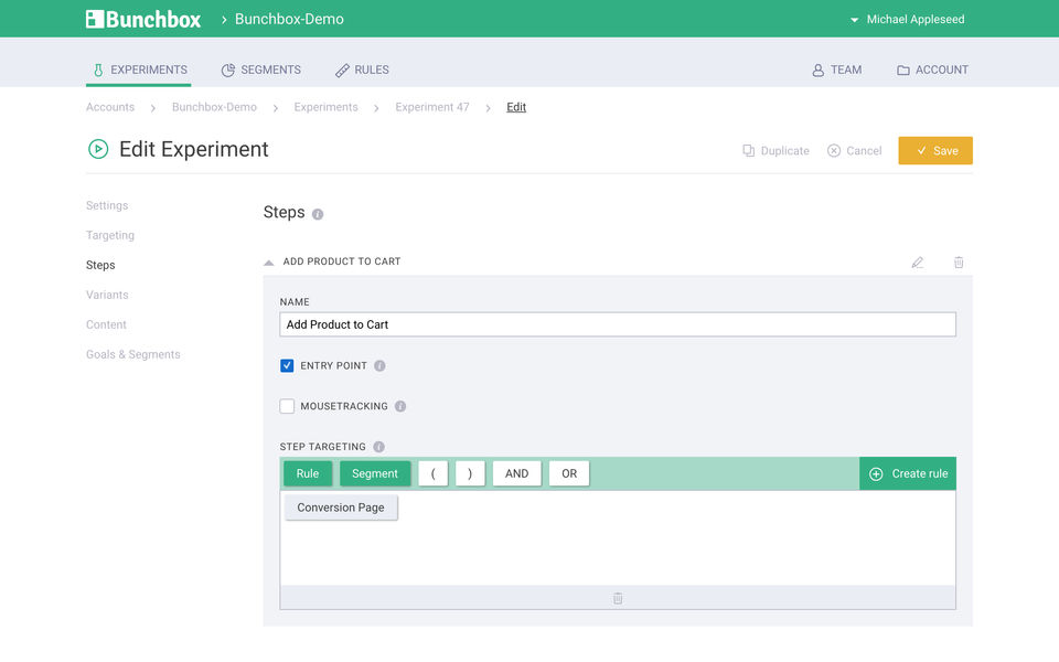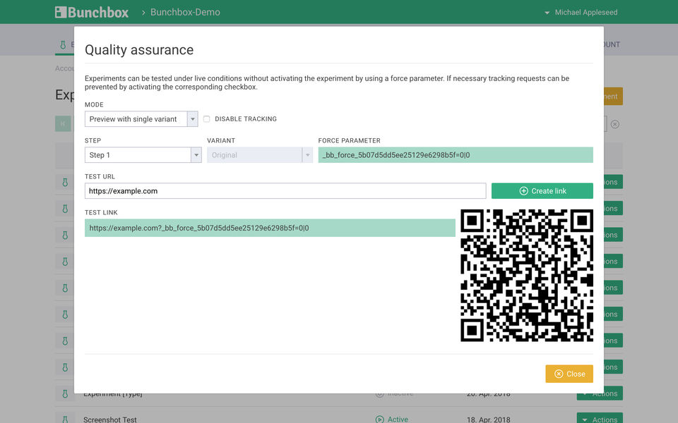 Bunchbox is the AB Testing Software used for the below functionalities.