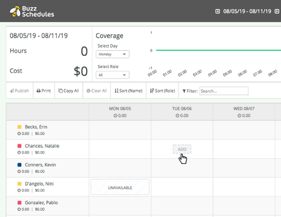 Buzz Schedules is the Employee Scheduling Software used for the below functionalities.