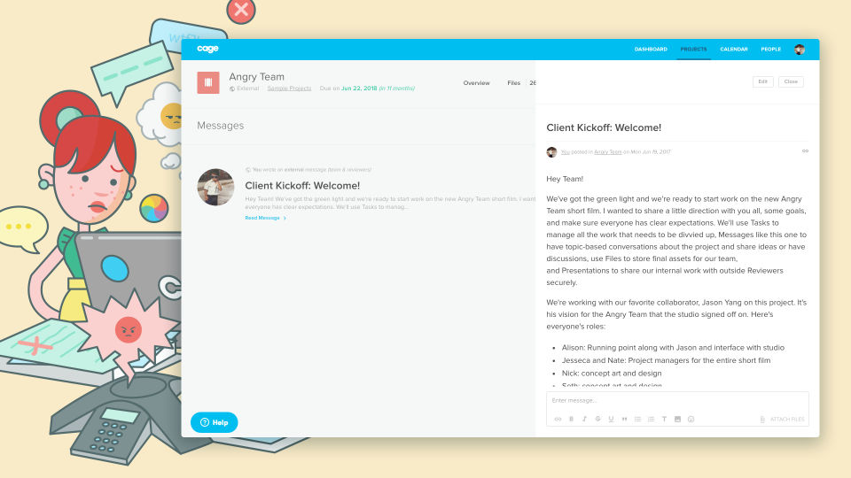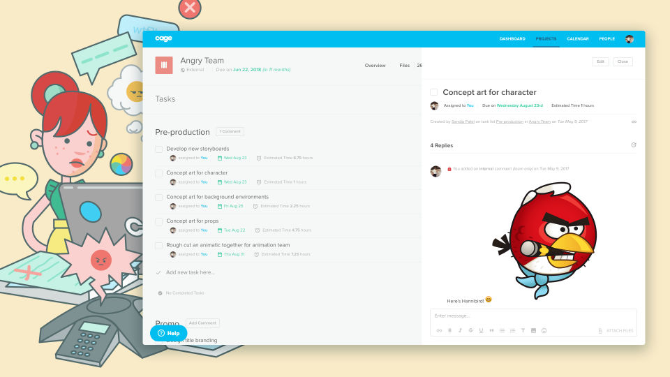 Cage is very helpful for overseeing project management and assigning tasks to individuals on your team. It can help you stay on top of deadlines by breaking up projects into these smaller tasks and keeping everyone the loop.