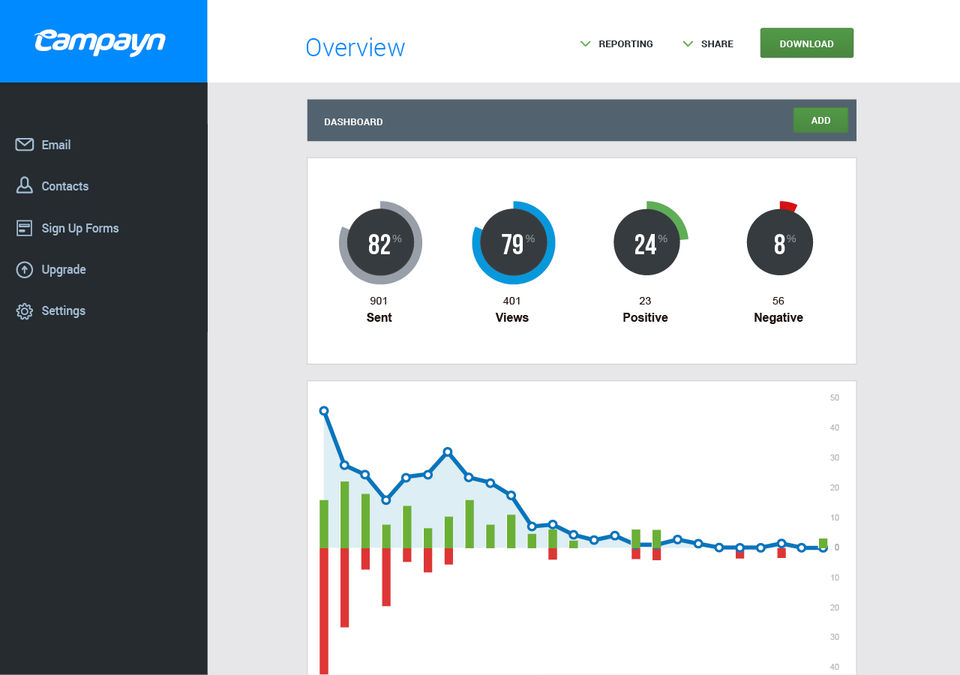 Campayn is the Email Marketing Software used for the below functionalities.