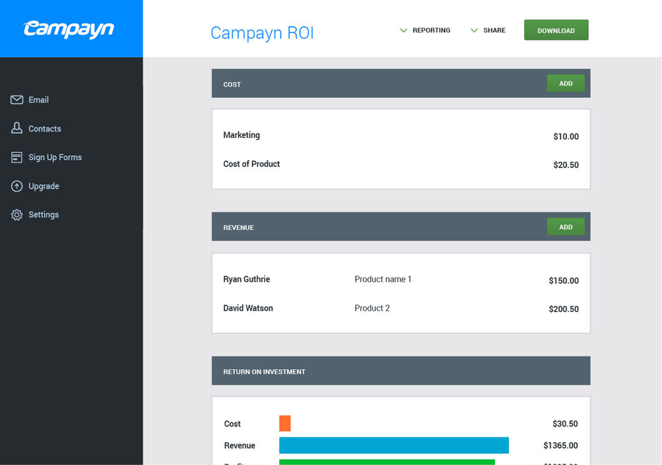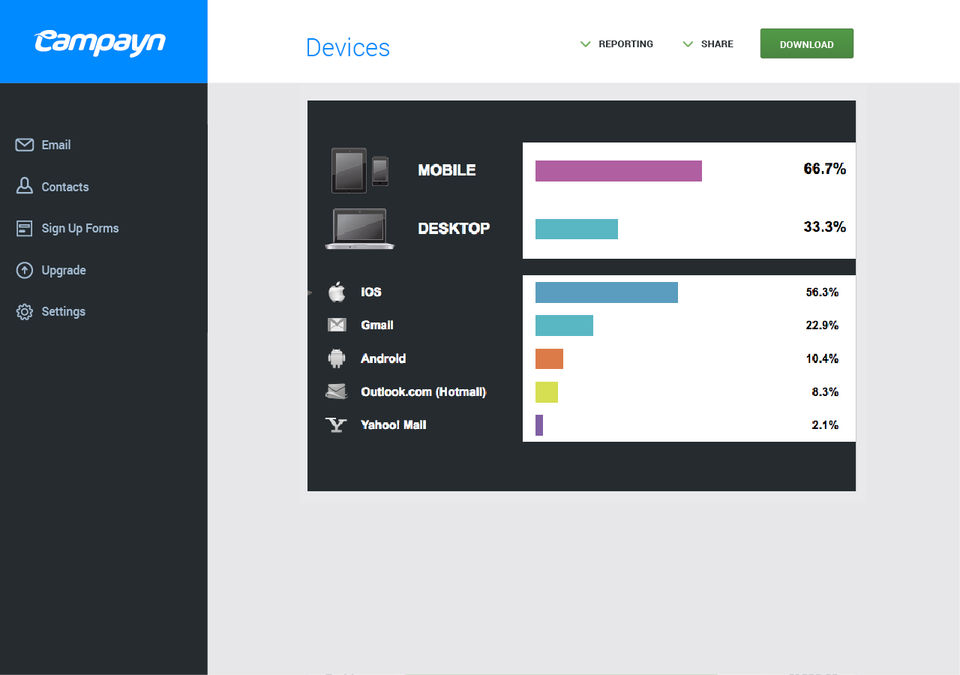 Campayn was the third platform I tried in last two years. It's definitely nicer and much more handy than other solutions. Templates are also pretty good. Especially I like the way how I can get other colleagues involved and manage their what they can see or do. Pricing is also decent. There's definitely a higher value, comparing with what you get with other competitors.