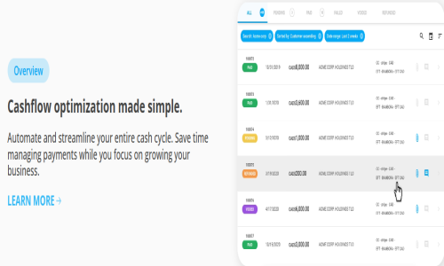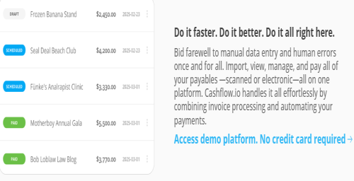 Cashflow.io offers transparent billing, custom API solutions for easy integrations, and flexible plans to meet the unique needs of every business size. With a strong support system and a demo platform that allows users to explore risk-free, Cashflow.io positions itself as a future-ready solution for modern financial management. Its success stories from brands like Psycho Bunny, Fenplast, and Station Grill further affirm its reliability and user satisfaction. Cashflow.io enables batch processing of invoices, meaning businesses can handle large volumes without sacrificing accuracy. Its intuitive interface and automated workflows significantly boost productivity, allowing finance teams to focus on strategic tasks rather than administrative burdens. Additionally, Cashflow.io integrates flexible payment options, including Credit Card, EFT, and ACH, ensuring that payments are processed securely and efficiently.