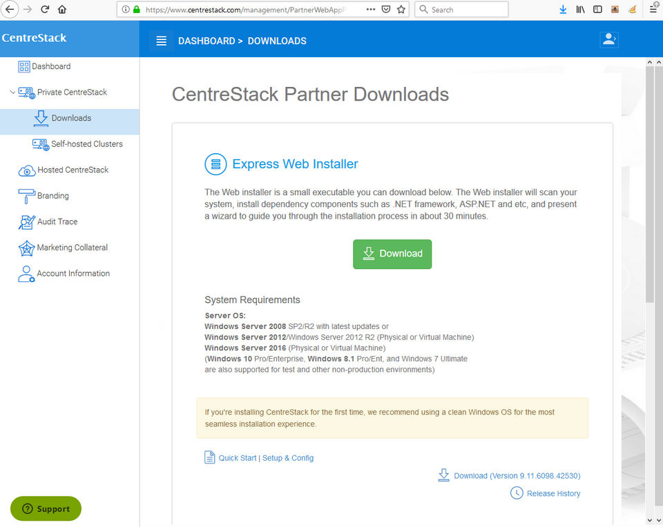 CentreStack provides Online (Ticket) support.