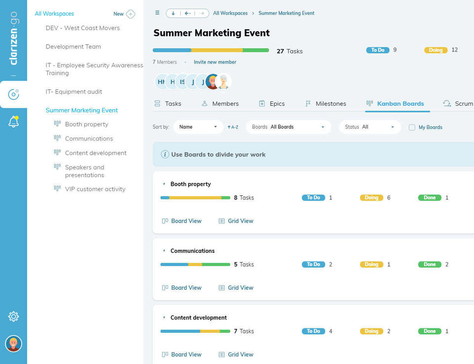 A subset of our operational IT team was looking for a flexible Kanban Board tool to replace a SharePoint based one that they had previously been using. As an existing Clarizen customer we looked into Go and reached out to Clarizen to understand the functionality. We learned that some features that we were hoping for in a Kanban board solution were in the pipeline for release, and we were offered the opportunity to work with their developers to help define requirements for those features. The tool ended up fitting our needs perfectly. There is also a great amount of documentation on their site available to reference related to Go. Clarizen as a vendor is very easy to work with and has consistently provided above average support.