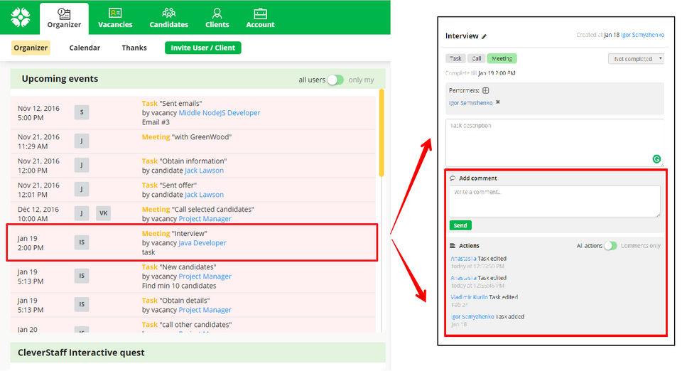- Tasks & comments for vacancies and candidates