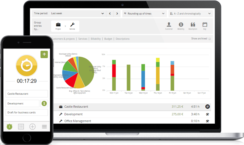 clockodo is the Time Tracking App & Software used for the below functionalities.