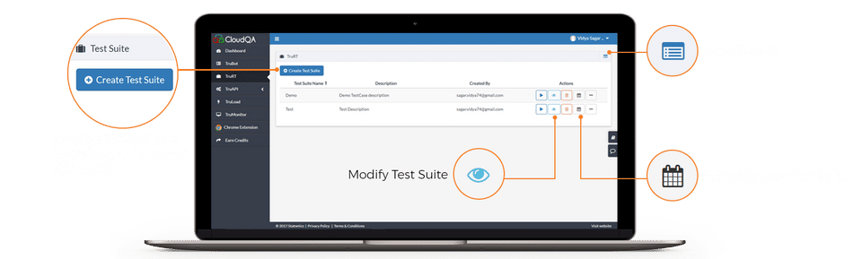 CloudQA is the Automated Testing Software used for the below functionalities.