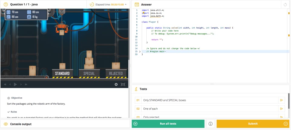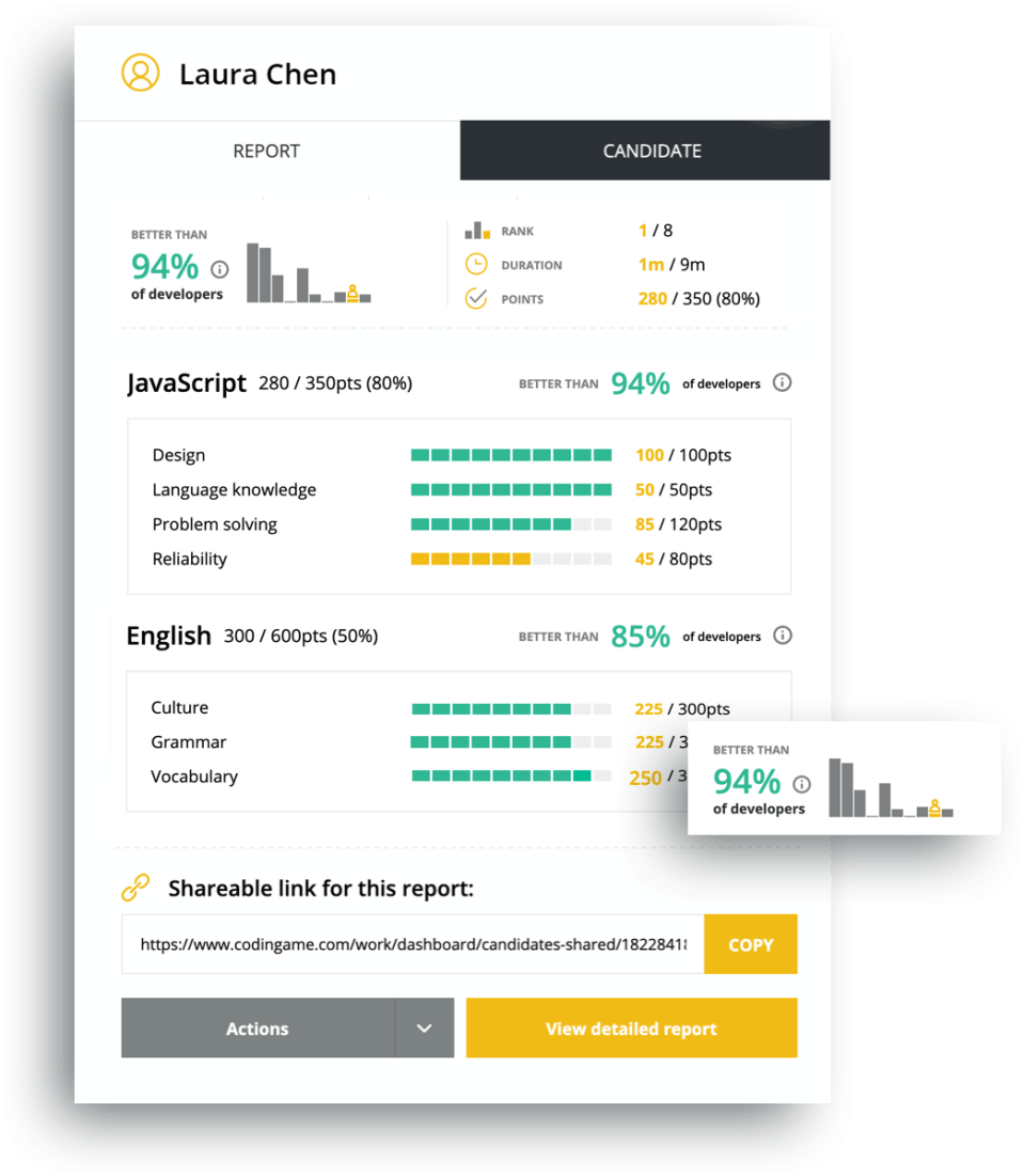 What sets CodinGame for Work apart is its engaging and gamified approach to coding assessments. Instead of traditional, text-based exams, candidates solve problems in an intuitive, interactive coding environment. The platform also features an AI-driven scoring system that evaluates code quality, efficiency, and correctness, providing recruiters with an objective measure of a candidate’s capabilities.