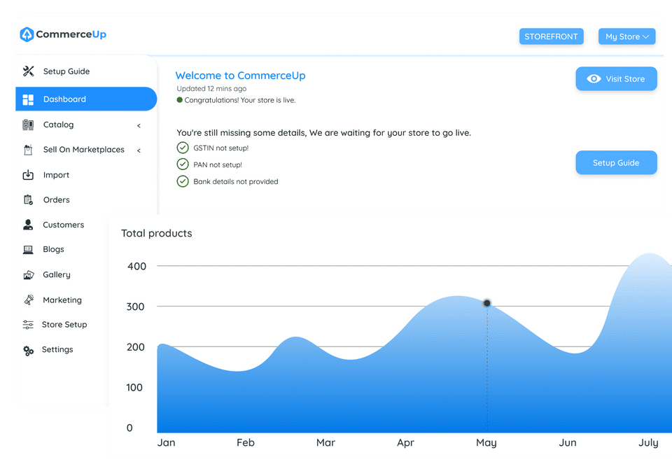 CommerceUp is the Ecommerce Software used for the below functionalities.
