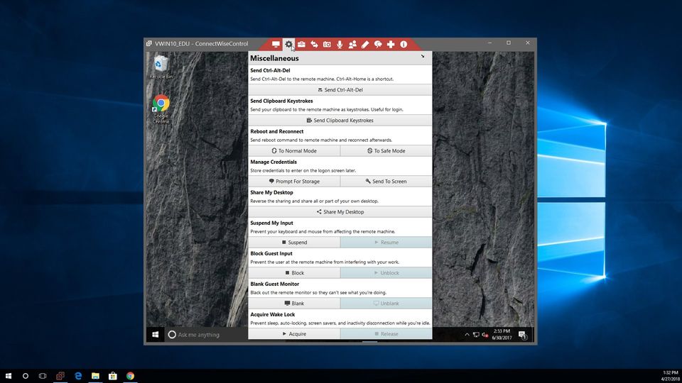 ConnectWise Control is the Remote Access Software used for the below functionalities.