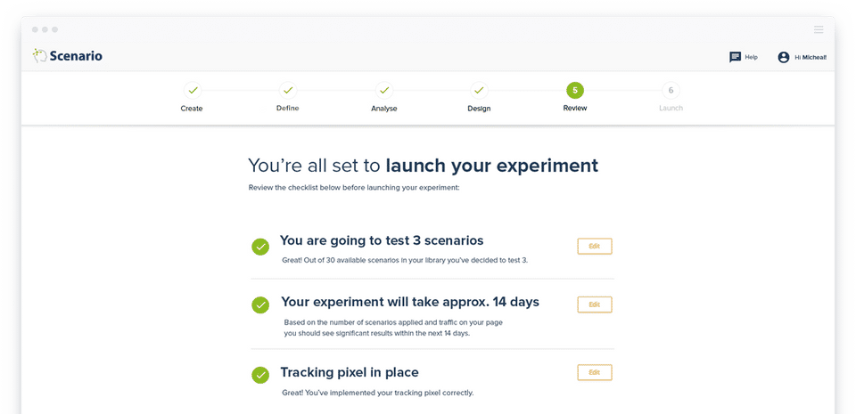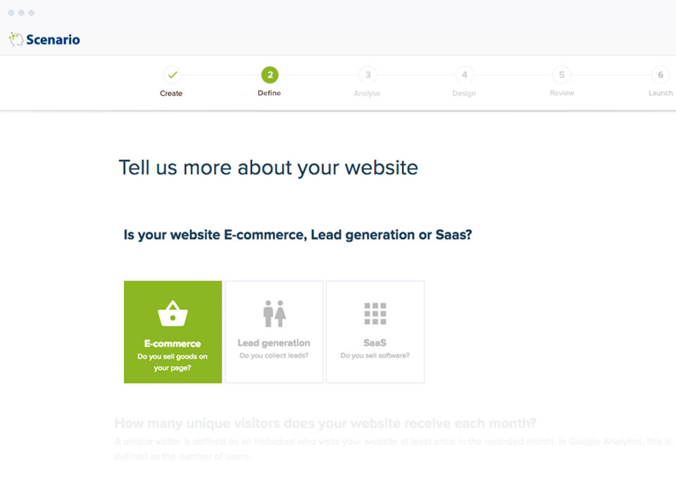 The solution is very intuitive and guides you based on some key questions you are asked in the beginning (about some data required for optimisation and/or the data (analysed by Scenario from your Google Analytics (Scenario connects seamlessly with Analytics through the entire optimisation process.