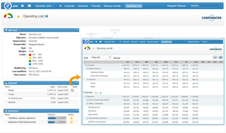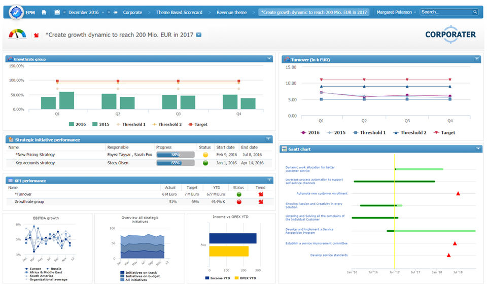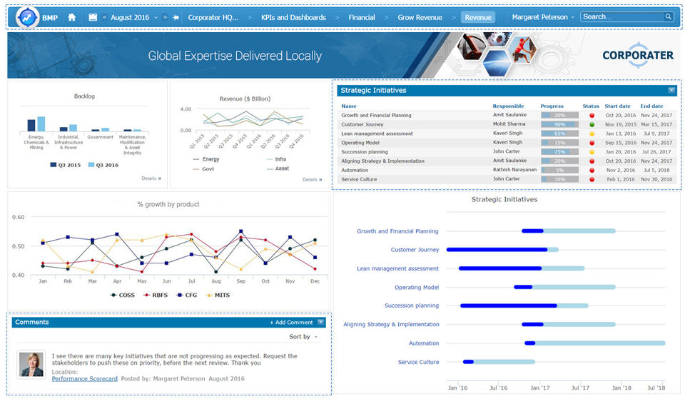 Corporater Business Management Platform is the Dashboard Software used for the below functionalities.