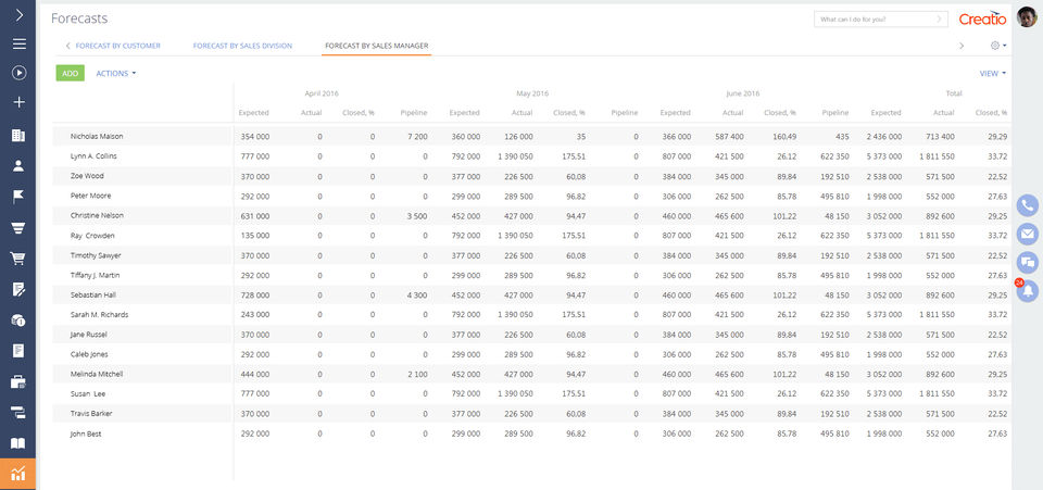 Creatio is the CRM Software used for the below functionalities.