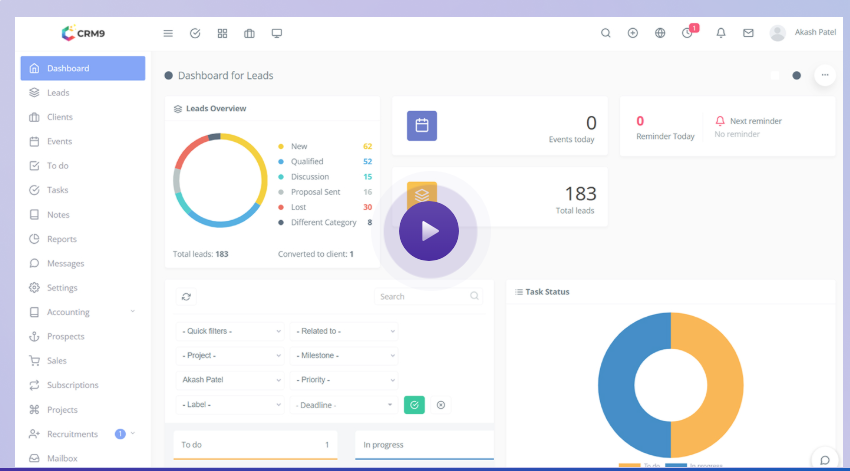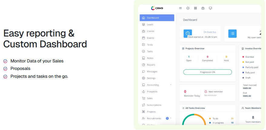 CRM9 empowers businesses to centralize customer interactions and streamline operations through an intuitive, customizable platform. Upon logging in, users encounter a dashboard summarizing key activities—upcoming tasks, open deals, support tickets, and campaign performance. The Contacts & Companies module captures details like contact info, communication logs, social links, and organizational structure, giving marketers and sales teams a 360° customer view. The Leads & Opportunities pipeline enables tracking from new leads through negotiated proposals to closed-won or -lost, with configurable stages, automated reminders, and rich reporting.