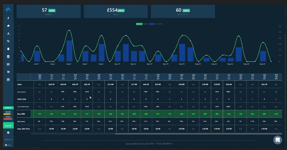 There is a free plan available which gives everyone a chance to try their service before paying for expensive plans. the customer support is absolutely fantastic, they are online all the time and replies very quickly, more than that they know what they are talking about and the replies are absolutely satisfactory for me. Now coming to the features the main tools of the website include a product research tool and a keyword research tool. the product research tool is very easy to work with, all you have to do is find the ASIN of the product you want to track and add it, the app will automatically grab the data for you about that product and similar products if you want. i have to say there is some serious insight in the data, its not normal search volume and review stats but also the sales insight to the product. the keyword tool is also similar that find search metrics on Amazon for the given keyword and ranking of products for the given keyword. if you're an amazon seller this tool is absolutely worth it. the premium pricing is very affordable. the dashboard is dark and beautiful, the analytics are shown alongside graphs so its very easy to compare it.