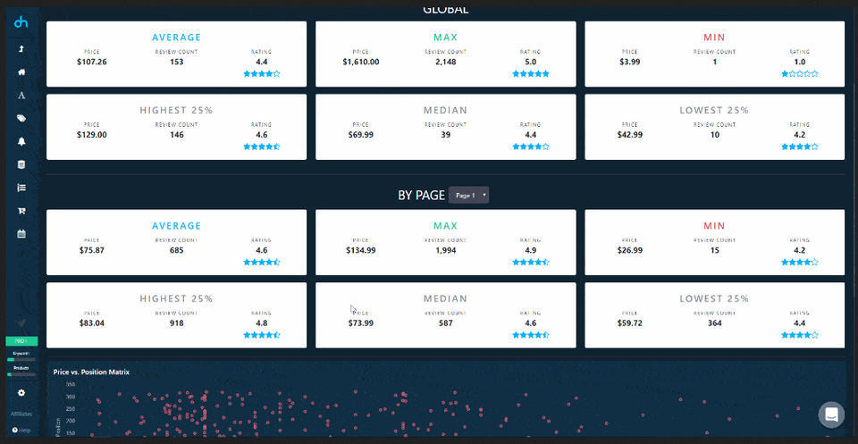 There is a free plan available which gives everyone a chance to try their service before paying for expensive plans. the customer support is absolutely fantastic, they are online all the time and replies very quickly, more than that they know what they are talking about and the replies are absolutely satisfactory for me. Now coming to the features the main tools of the website include a product research tool and a keyword research tool. the product research tool is very easy to work with, all you have to do is find the ASIN of the product you want to track and add it, the app will automatically grab the data for you about that product and similar products if you want. i have to say there is some serious insight in the data, its not normal search volume and review stats but also the sales insight to the product. the keyword tool is also similar that find search metrics on Amazon for the given keyword and ranking of products for the given keyword. if you're an amazon seller this tool is absolutely worth it. the premium pricing is very affordable. the dashboard is dark and beautiful, the analytics are shown alongside graphs so its very easy to compare it.