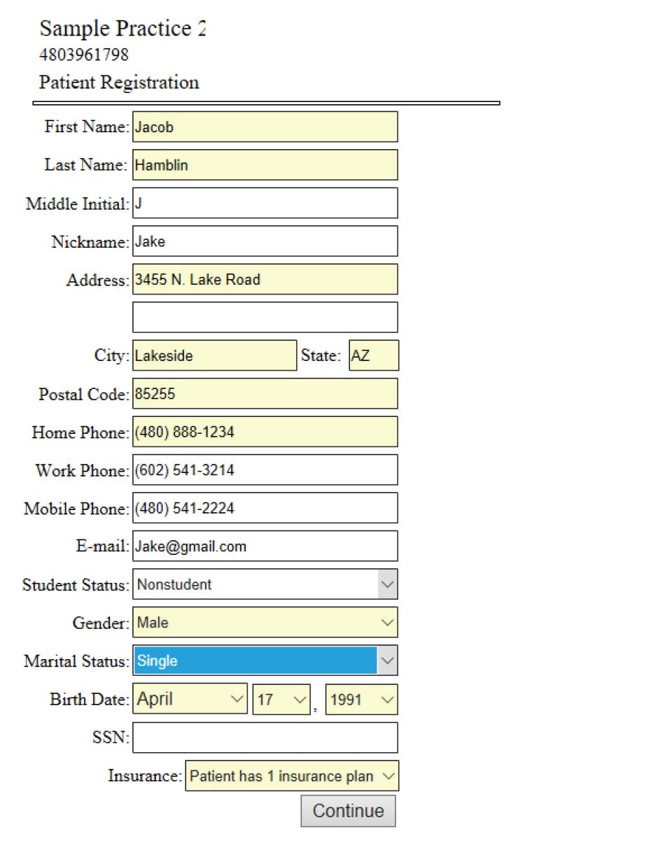 - Web Kiosk - online new patient registration and health history