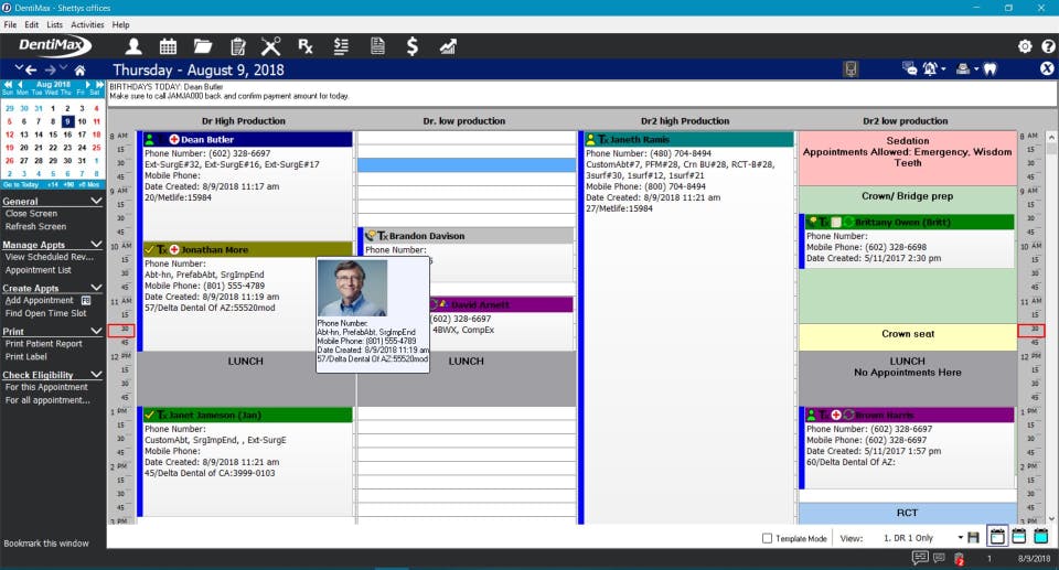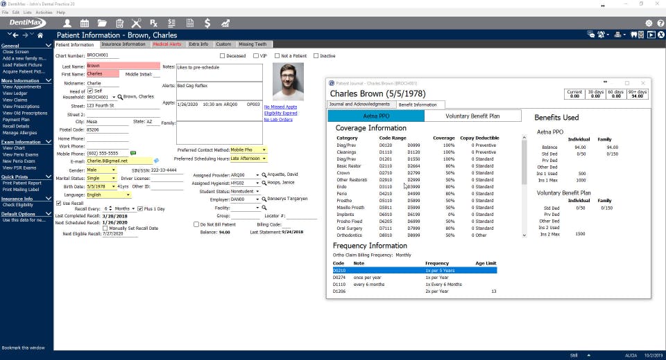 - Front Office - scheduling & billing & payment processing & CDT codes & reports