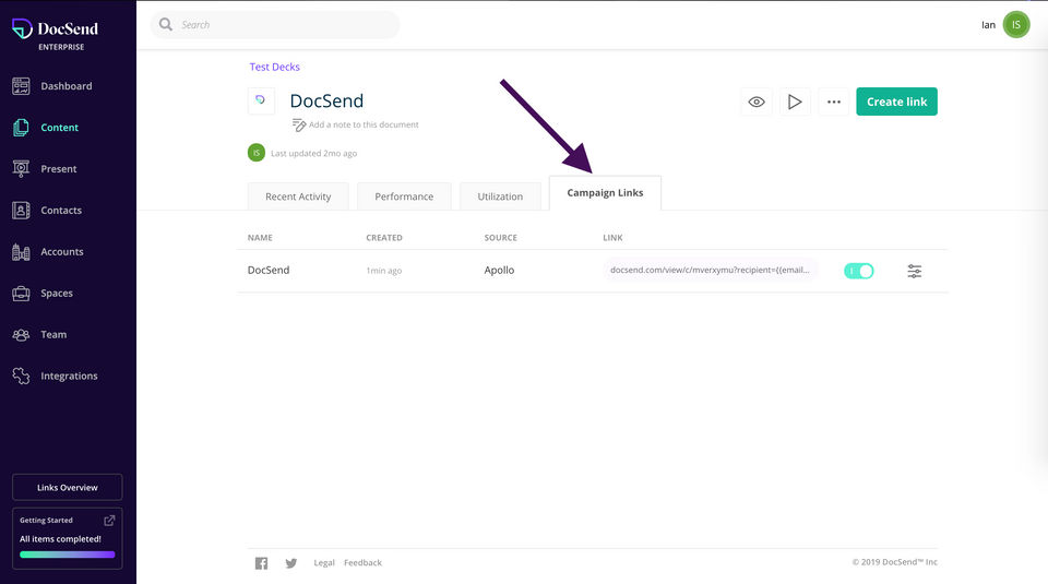 DocSend is the Sales Enablement Software used for the below functionalities.
