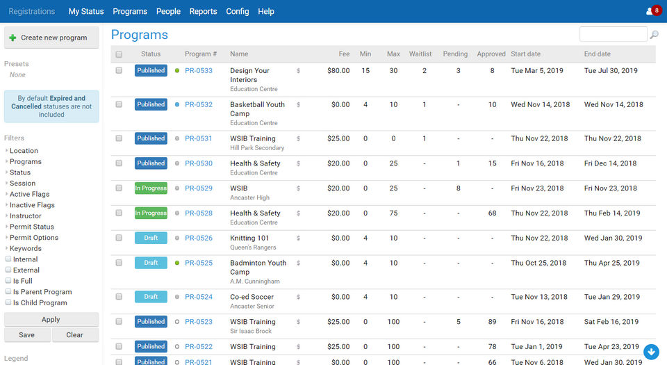 - Registrations