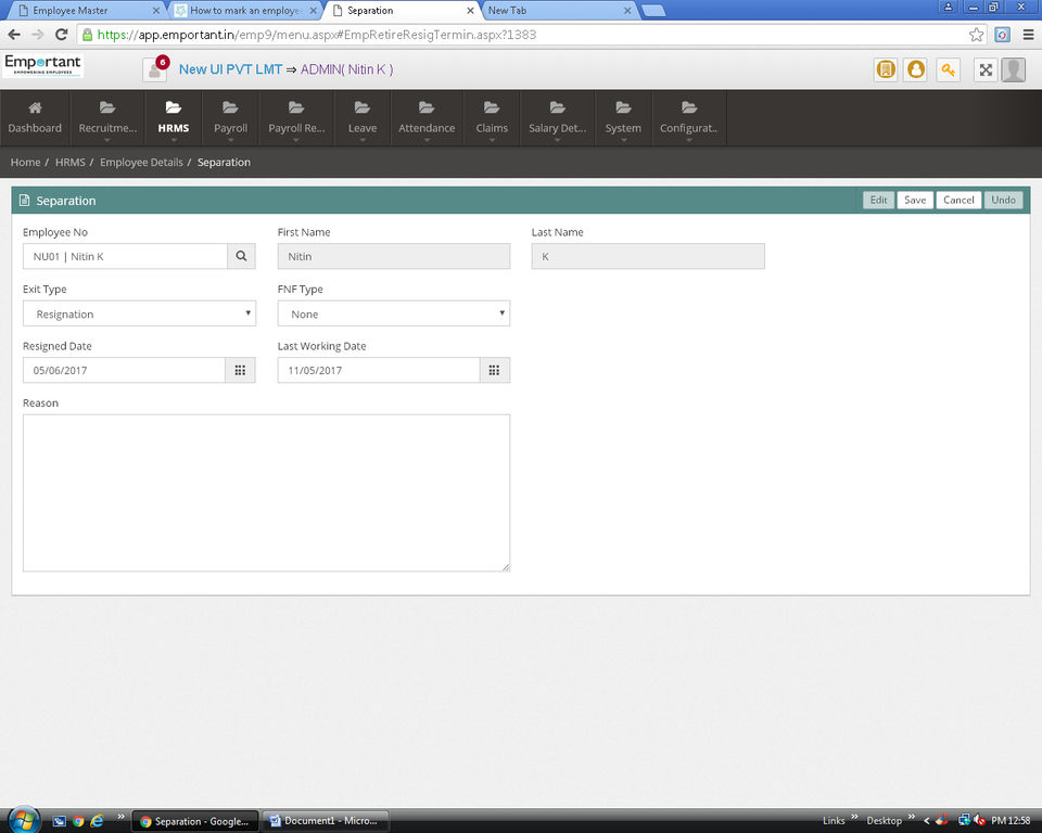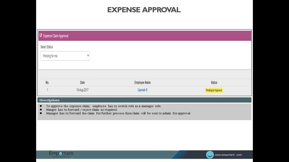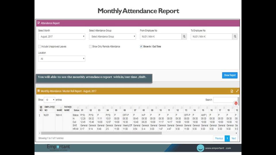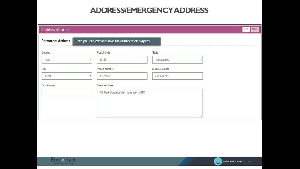 Emportant is the HR Software used for the below functionalities.